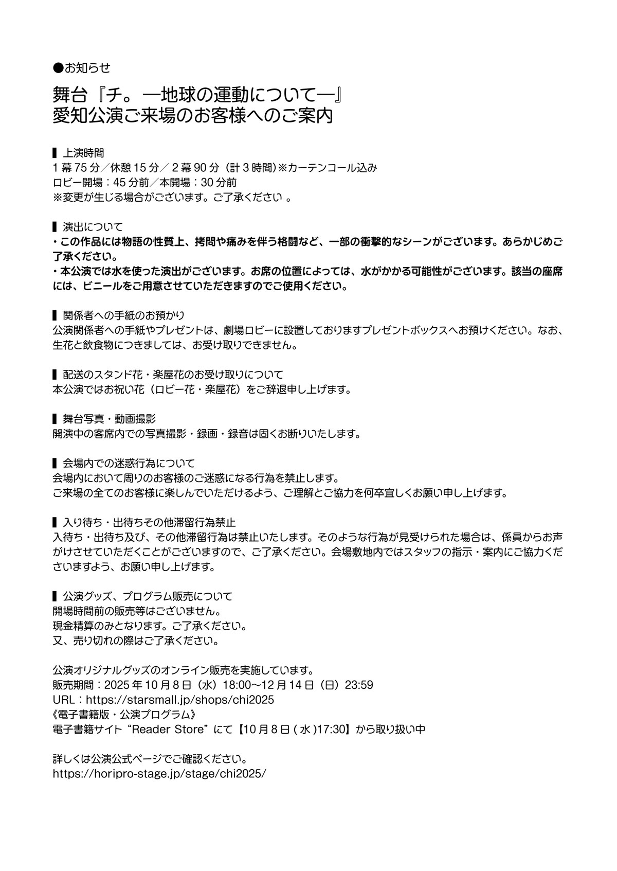 • ご観劇は、チケットをご予約・ご購入されたご本人様に限定させていただきます。