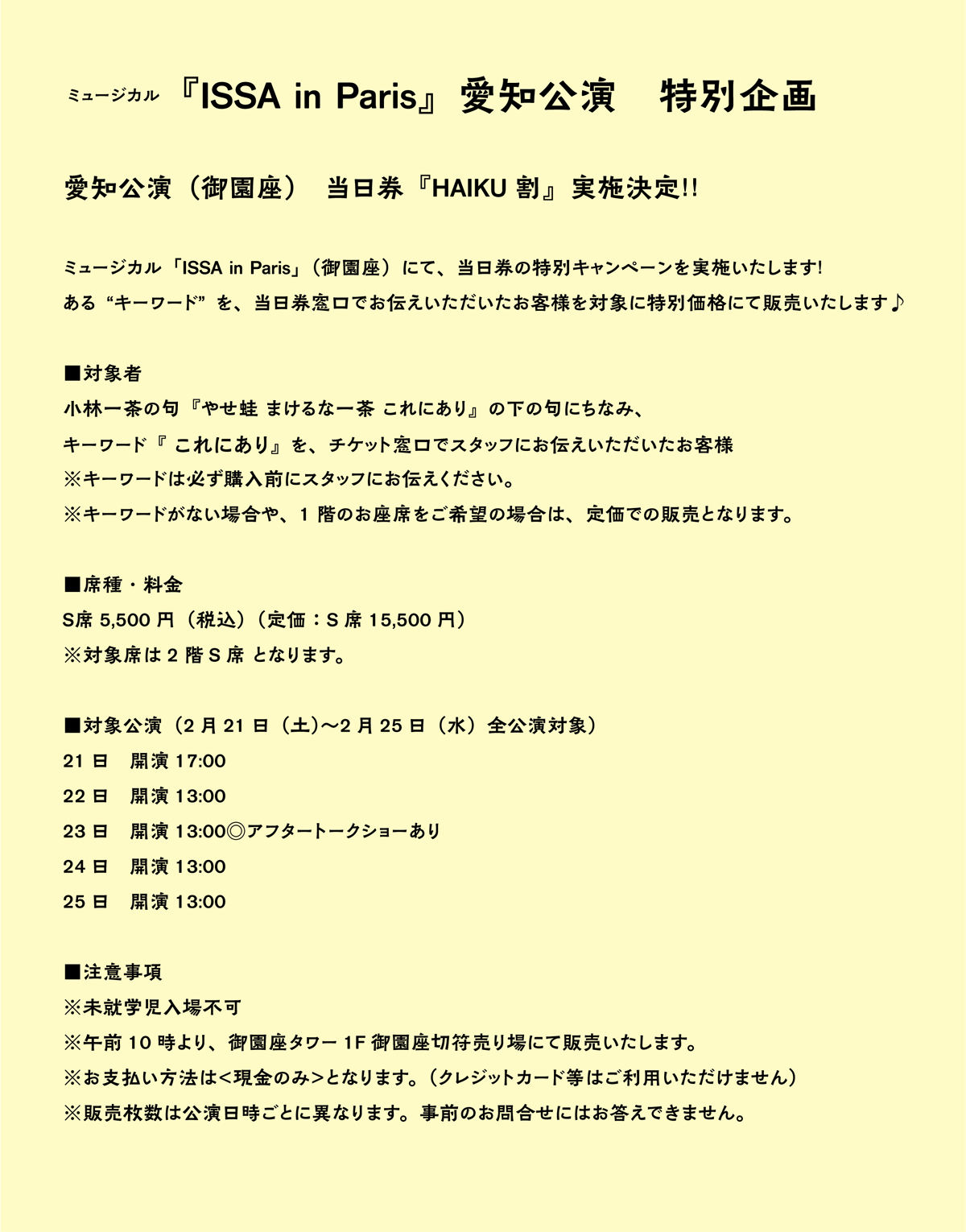 料 金:S席15,500円
