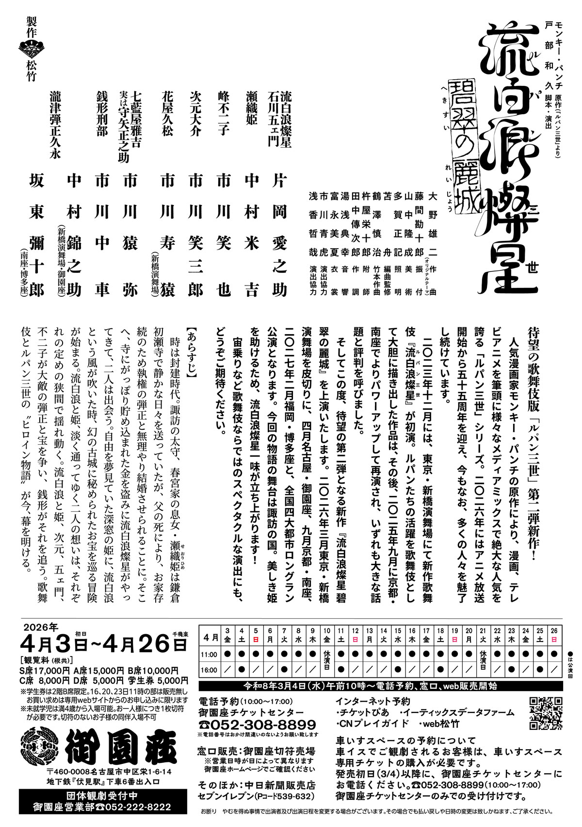 ご購入の方は、3月4日午前10時以降に御園座チケットセンターでご予約ください。