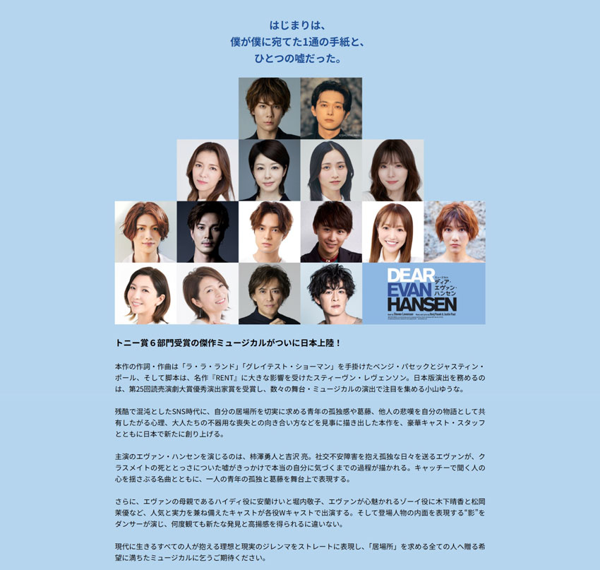 公式ホームページ https://horipro-stage.jp/stage/dearevanhansen2026